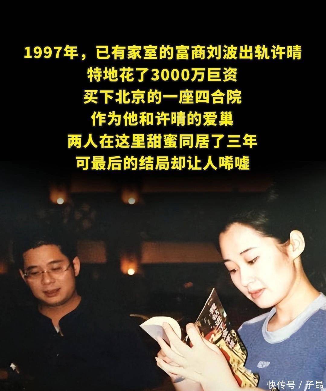 离婚后,他豪掷3000多万元,买下北京宽街一座占地5000平方米的四合院,据称是张作霖旧居,将许晴安置其中,两人开始高调同居。这段恋情让刘波的曝光度大幅提升,他常常在家中举办聚会,不少人冲着许晴的名气前来,无形中也为他的商业版图增添了人脉。